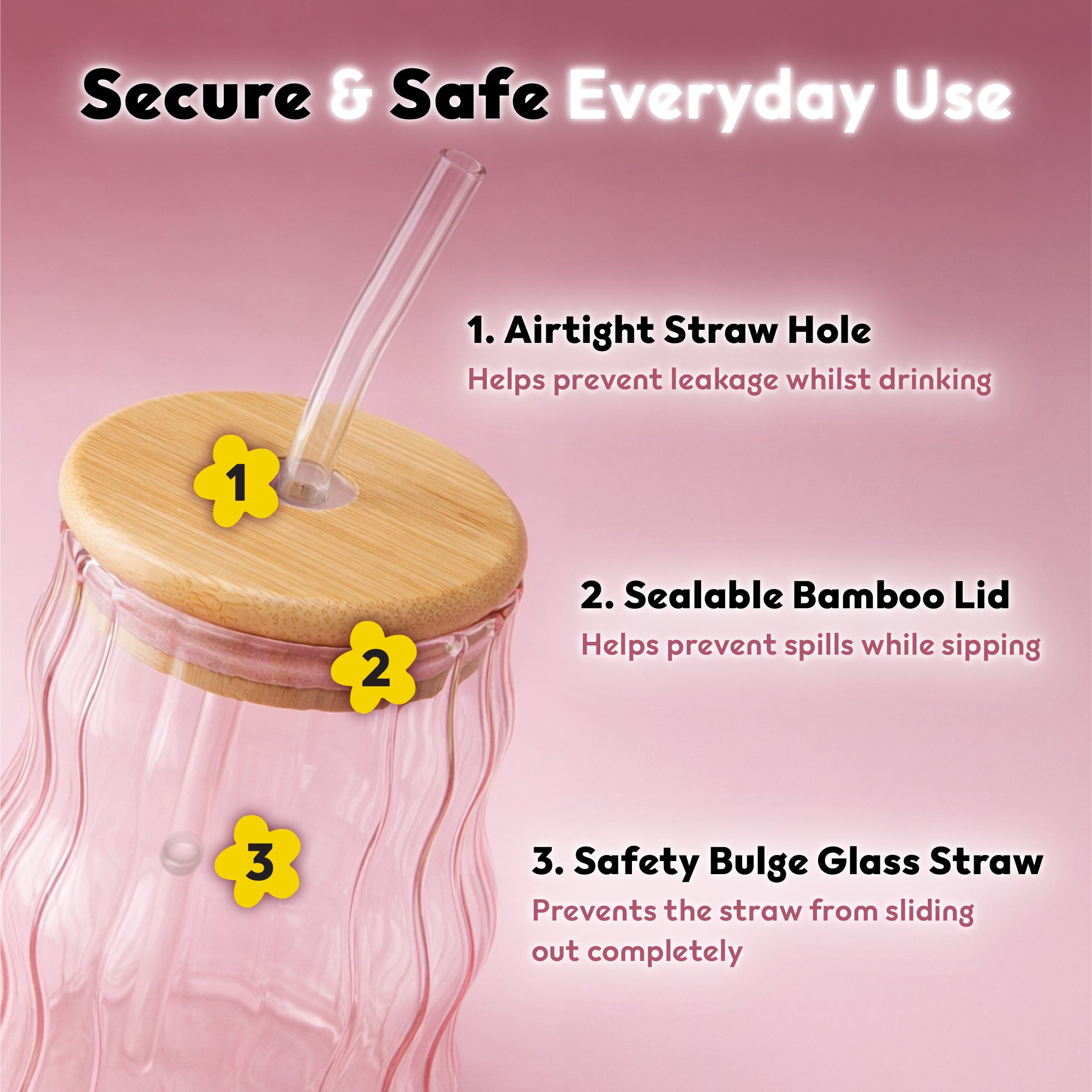 ✔️ Bamboo Lid & Glass Straw – Eco-friendly & reusable